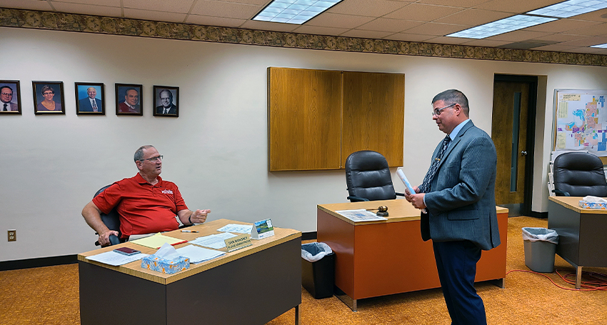 Administrator Dan Mahoney (left, seated) chats with Police Chief Dan Ault following the Board's Aug. 4 meeting. (Metro Wire photo) Administrator Dan Mahoney (left, seated) chats with Police Chief Dan Ault following the Board's Aug. 4 meeting. (Metro Wire photo) Plover announces plans for government continuity during transition August 5, 2021 Keep community journalism going. Subscribe today for online annual or monthly access! Username Password Remember Me Forgot Password